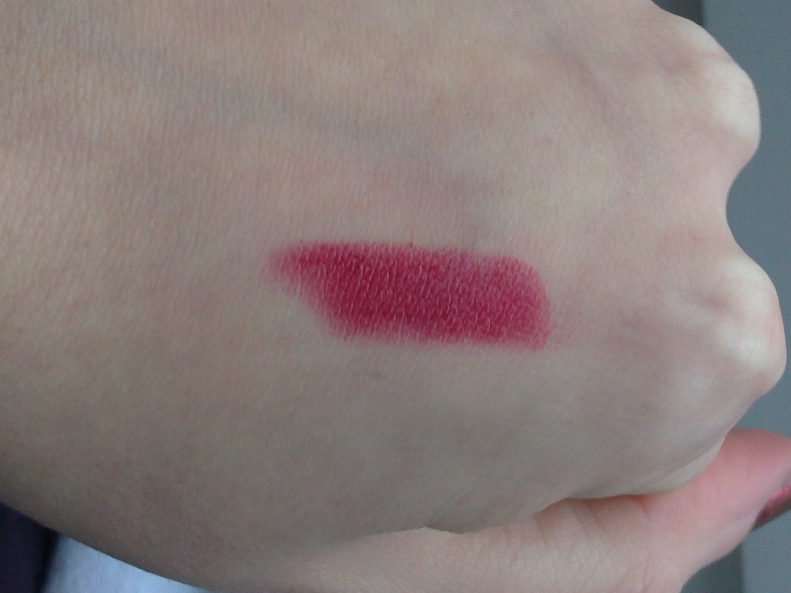 Come potete vedere, Cheerful Cherry è pigmentato, di una tonalità ciliegia intensa. Non caricate troppo gli occhi quando lo indossate: possono bastare una linea di eyeliner e tanto mascara e un leggero velo di blush. Lo trovo un colore stupendo, adatto a tutte tranne che a quelle dalla carnagione molto pallida (come la mia sigh sigh! E' così frustrante scoprire una tonalità che ti piace e non poterla indossare!).