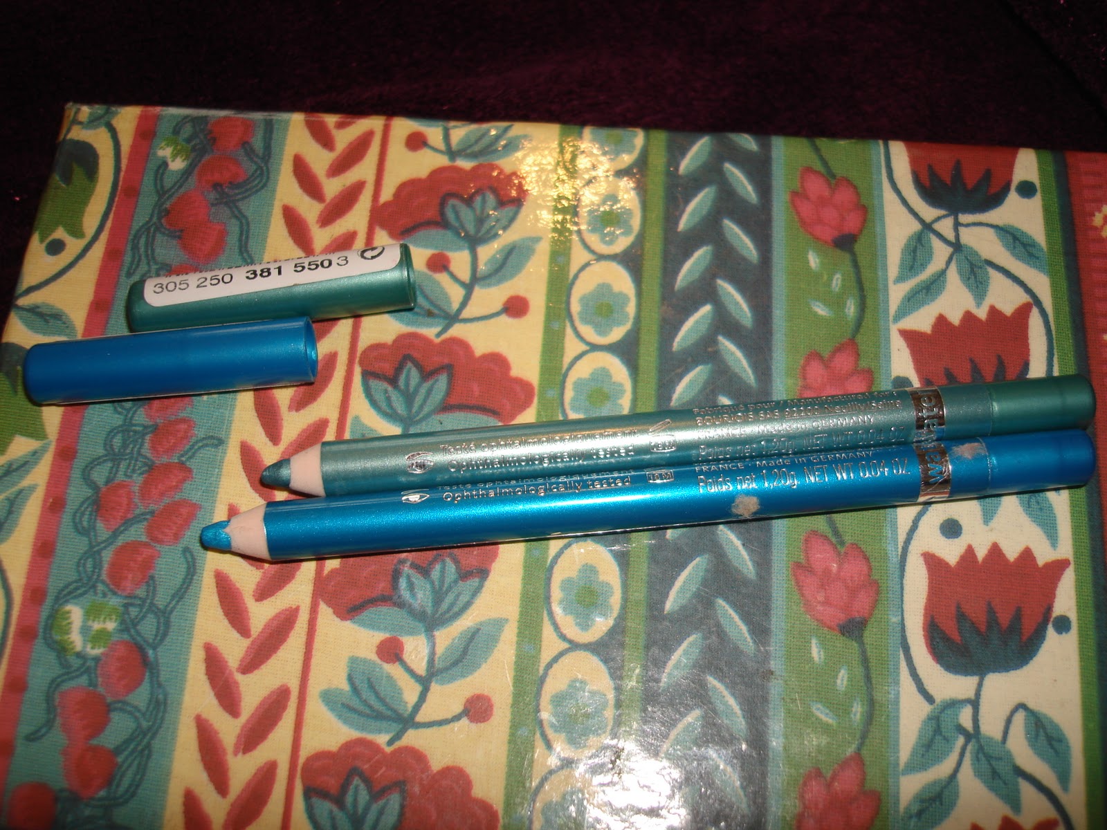 L'azzurro (o il viola, non mi so decidere! xD) è il mio colore preferito e, nonostante la teoria dei colori dica che il blu è il colore che fa risaltare gli occhi color nocciola, mi sono accorta di non indossare mai un ombretto di questo colore! Ho allora deciso di comprare i due eyerliner in foto, il primo è Vert Pépite, il secondo Blue Clinquant. Il primo è un bellissimo verde mare metallico mentre il secondo è uno splendido turchese.