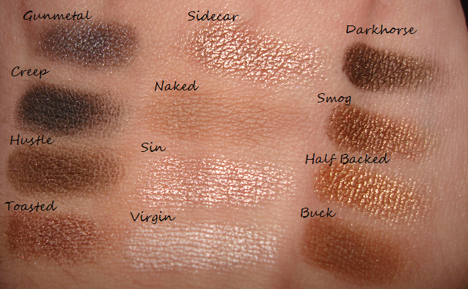 Naughty Noir: it changes quite a bit if used wet or dry: when it's dry (swatch on the right) it's black with a silver shimmer, if used wet (on the left) it leaves a beautiful gunmetal shade.